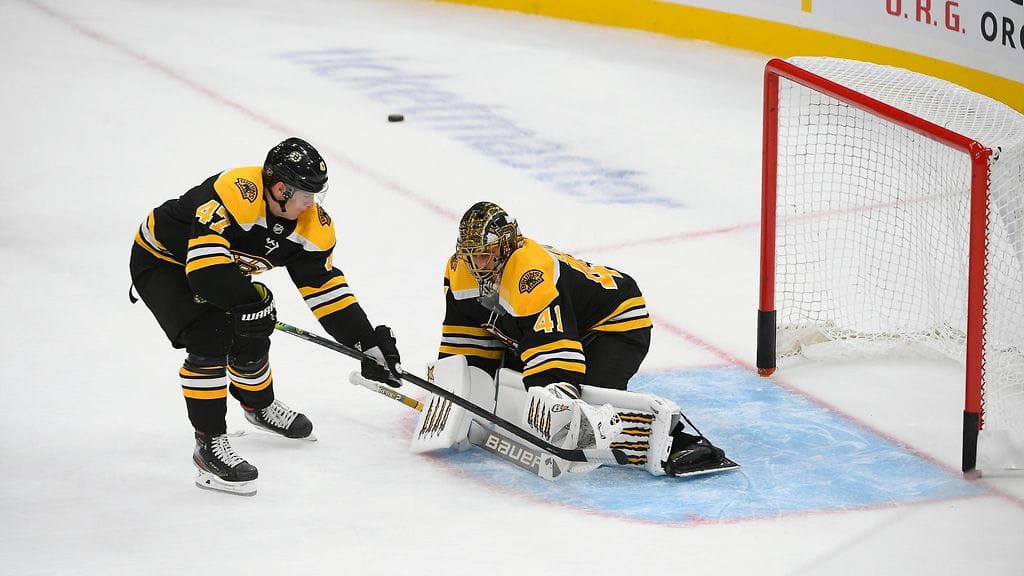 Ensimmäinen erän puolivälissä nähtiin näet erikoinen tilanne, jossa Rask seikkaili kauas maaliltaan. Islandersin Johnny Boychuk tuli tilanteessa laidalta keskelle, ja Rask pelasi itsensä hetkeksi ulos.