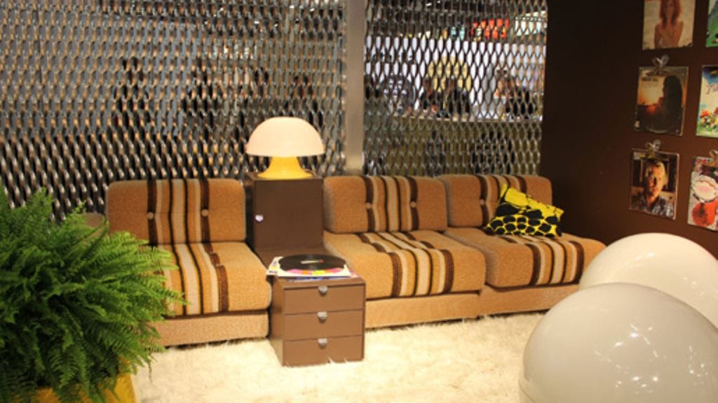 70-luvun yhteiskunnallinen muutos näkyi voimakkaana muuttoliikkeenä maalta kaupunkiin. Ruskeat nahkasohvat, vihertävät kokolattiamatot ja tummat lasipöydät kuvasivat hyvin sisustusihanteita. Öljyn hinnan nousu pakotti muotoilijat löytämään vaihtoehtoja muovin ja lasikuidun tilalle, ja synteettiset materiaalit antoivat mahdollisuuden uuden kokeiluun. Moni siirtyikin sarjatuotantoon, ja koteihin hankittiin huonekalujen ohella kodinkoneita ja kylpyammeita.