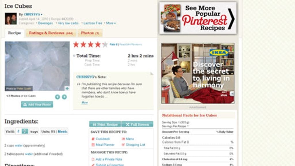Suomalaisten keittiöiden poropeukalot alkavat kuitenkin vaikuttaa suoranaisilta keittiövirtuooseilta, jos meitä verrataan amerikkalaisiin kotikokkeihin. Yhdeltä Amerikan suurimmilta ruokasivustolta, Food.comista löytyy nimittäin tarkka valmistusohje jääpalakuutioihin ravintotietoja myöden: