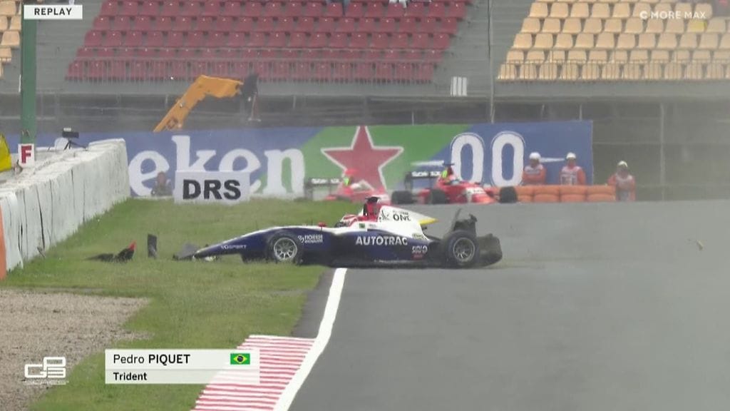 Sateisissa olosuhteissa ajettu kisa tarjosi kuitenkin draamaa alusta alkaen ja kolminkertaisen F1-maailmanmestari Nelson Piquet'n poika Pedro ajoi ulos jo kisan kolmannella kierroksella aiheuttaen kisan ensimmäisen turva-autoepisodin.