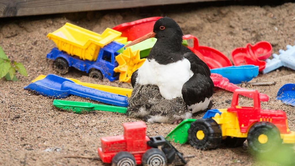 Valokuvaaja Matti Rekilä odotti tunnin, jotta poikasiaan lämmittelevä meriharakka-emo kääntyisi häntä kohti. Odotus palkittiin, sillä kuva poikastensa kanssa hiekkalaatikolla olevasta emosta on lähes ainutlaatuinen.