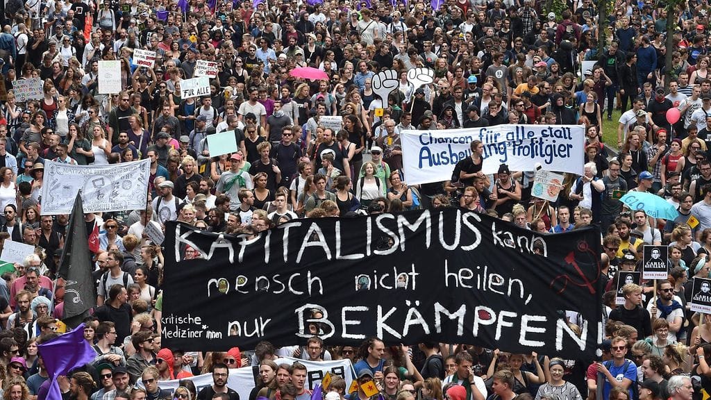 Saksan poliisi on arvioinut, että mielenosoittajia olisi noin 100 000, mutta järjestäjien mukaan määrä voi olla jopa kaksinkertainen.