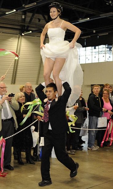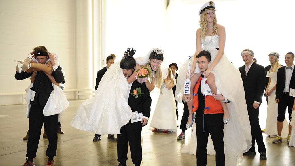 Jukka Mertanen ja Katrin Kreen astelivat avioliiton rauhaisaan satamaan vauhdikkaan ja leikkisän juoksutapahtuman päätteeksi Messukeskuksessa. Päätös Messukeskuksessa avioitumisesta oli syntynyt hetkessä.