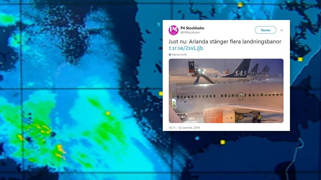 Suomea lähestyvä lumimyräkkä sotkee lentoliikennettä jo naapurimaassa Ruotsissa.