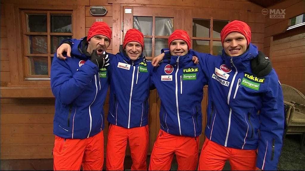 Kisassa kahdeksanneksi sijoittuneen Suomen joukkueen muodostivat Lauri Asikainen, Ville Larinto, Harri Olli ja Janne Ahonen. Ahonen kaatui ensimmäisen hyppynsä loppuliu’ussa, mutta ei loukannut itseään.