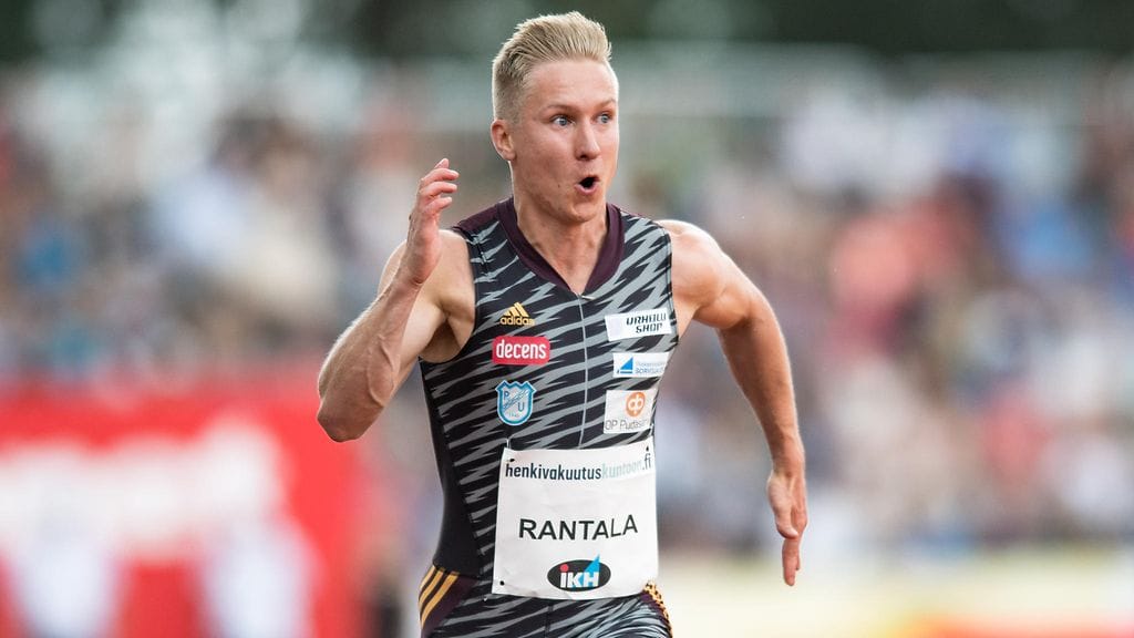 Pudasjärven Urheilijoiden Eetu Rantala voitti miesten 100 metrin juoksun Jyväskylän Kalevan kisoissa ajalla 10,58.