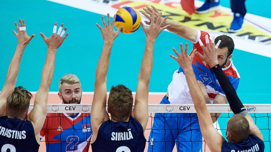 Serbia voitti Suomen miesten lentopallomaajoukkueen 3-0 (25-20, 25-18, 34-32) EM-kisojen alkulohkon ottelussa maanantaina.