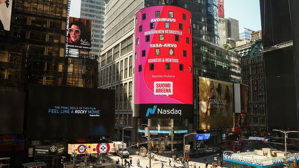 SuomiAreenan uudistettu visuaalinen ilme on julkaistu yhdellä maailman näyttävimmistä mainostauluista, New Yorkin Times Squarella. Uusi visuaalinen ilme ja freesattu logo lävähtivät jättiruudulle monien silmäparien ihmeteltäväksi. Times Squarella käy päivittäin yli 300 000 ihmistä.