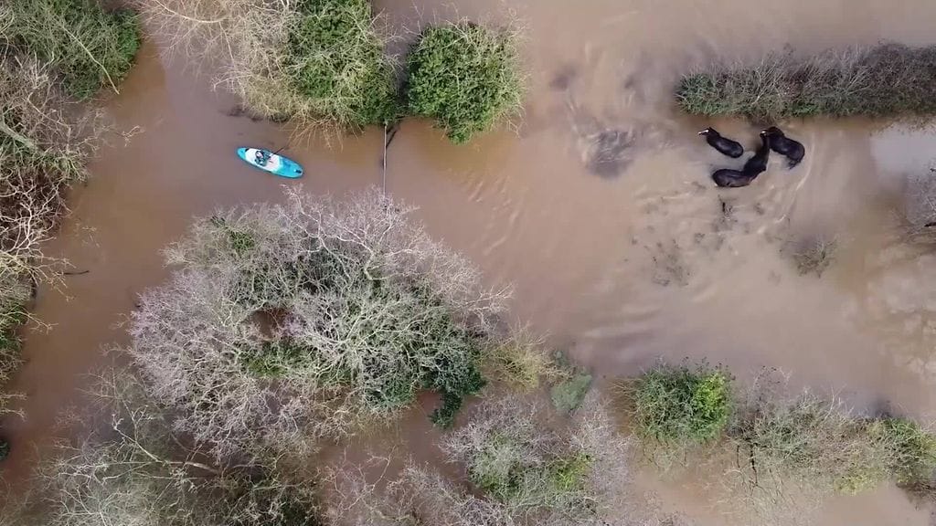 Sup-lautailija pelasti viime viikolla neljä hevosta hukkumiselta tai hypotermialta tulvivalla laitumella Chesterissä, Englannissa.