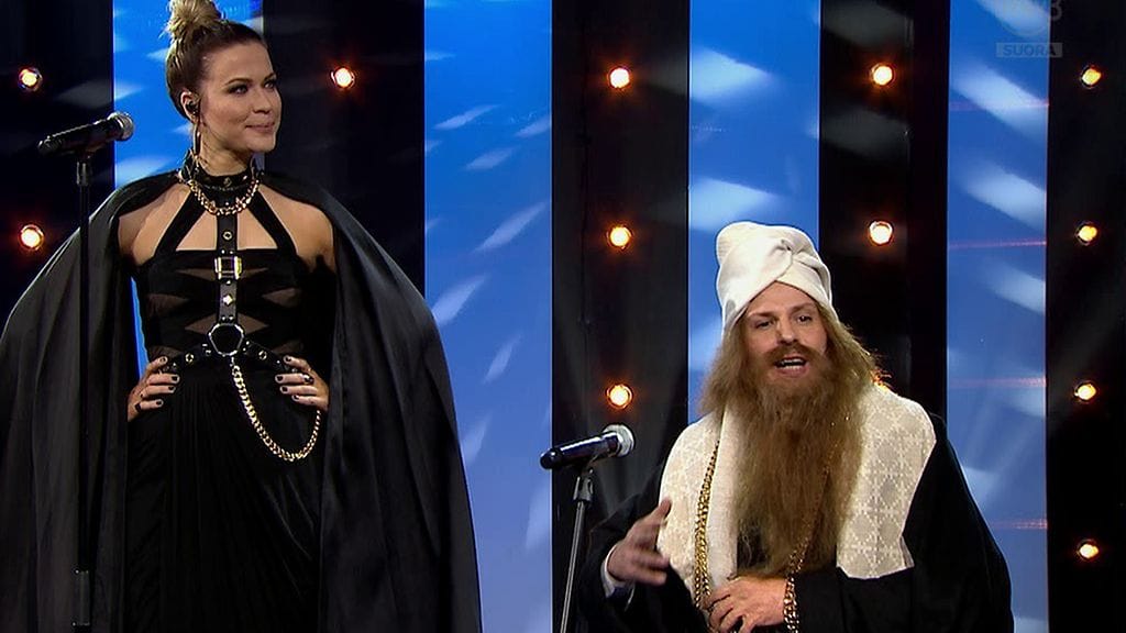 Jenni Vartiainen ja Timo Lavikaisen sketsihahmo Isä Nitro esittivät erikoisen version Vartiaisen jättihitistä.