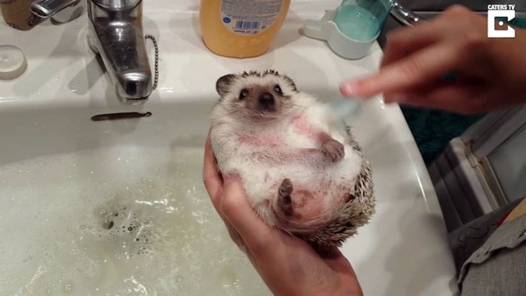 Kahdeksan kuukauden ikäistä siiliä hemmotellaan perheessä toden teolla. Yllä olevalla videolla se käy kylvyssä!
