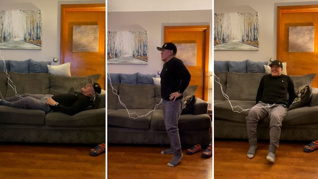 Mies kiinnitettiin synnytyskipuja simuloivaan koneeseen. Voit katsoa yllä olevalta videolta, kuinka kokeilu miehen osalta onnistui. Kokeen alussa mies esimerkiksi vakuutti haluavansa seistä, koska eihän kipu voi kovin pahaa olla.