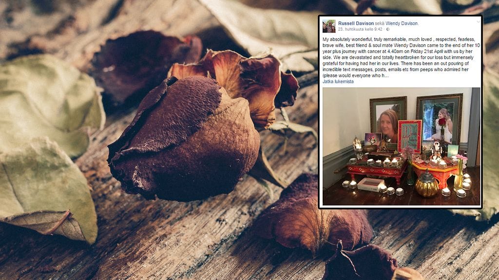Kun Wendy-vaimo kuoli huhtikuun 21. päivä syöpään, Russell Davidson, 50, halusi itse päättää, mitä hänen ruumiilleen tapahtuu. 50-vuotiaana menehtyneen Wendyn ruumis jäikin yhteiseen kotiin melkein viikoksi, ennen kuin mies oli valmis viemään sen krematorioon viimeisiä jäähyväisiä varten.