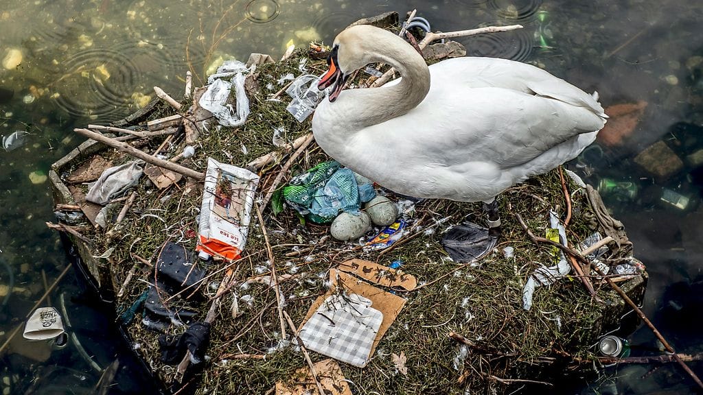 Kööpenhaminalainen joutsen on käyttänyt pesänsä rakennusmateriaalina tavanomaisten ainesten lisäksi myös muovijätettä. Hätkähdyttävät kuvat joutsenen pesästä julkaistiin eilen.