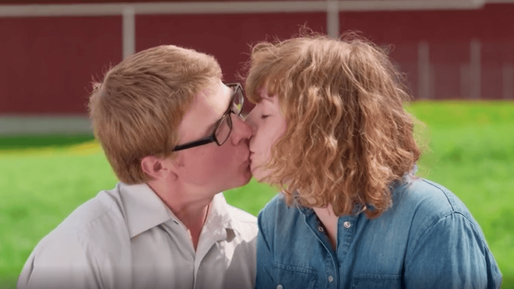 Maajussille morsian -ohjelman maajussi-Arho ja hänen valittunsa Karoliina kuhertelevat rakastuneina farmiviikon päätteeksi.