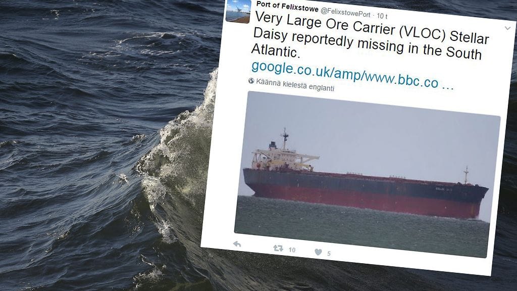 Suuri rahtilaiva on kateissa Atlantin valtamerellä kertovat uutistoimisto BBC ja sanomalehti The Telegraph. Etelä-korealaisessa aluksessa, Stellar Daisyssa oli 24 miehistön jäsentä.