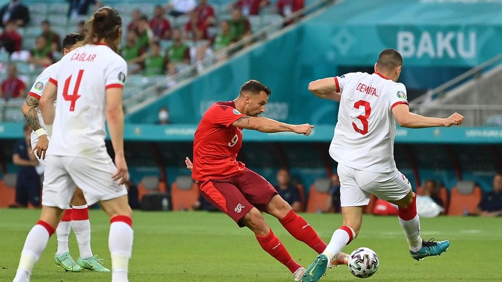 Ennen ottelua yhden pisteen turvin A-lohkon kolmossijalla majaillut Sveitsi sai tärkeään otteluun upean alun. Haris Seferovic pääsi kääntymään vapaasti Turkin boksin tuntumassa ja laukoi pelivälineen tarkasti oikeaan alakulmaan.