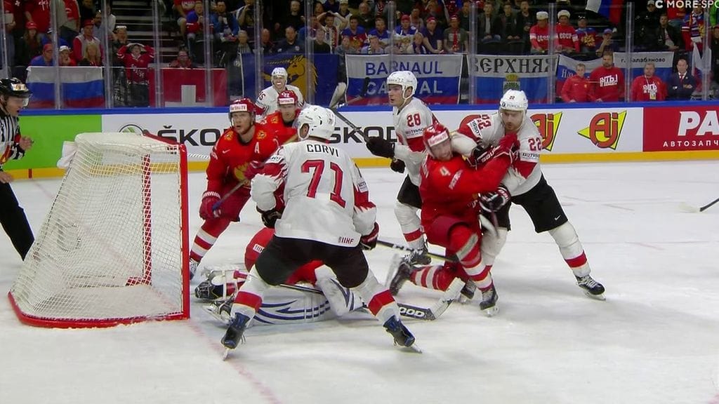 Viimeisen erän aikana nähtiin maaleja vuorotellen. Ensin Sveitsi pääsi kaventamaan 2-3:een, kun Sven Andrighetto sai laitettua pomppu kiekon venäläisen luistimen kautta maaliin.