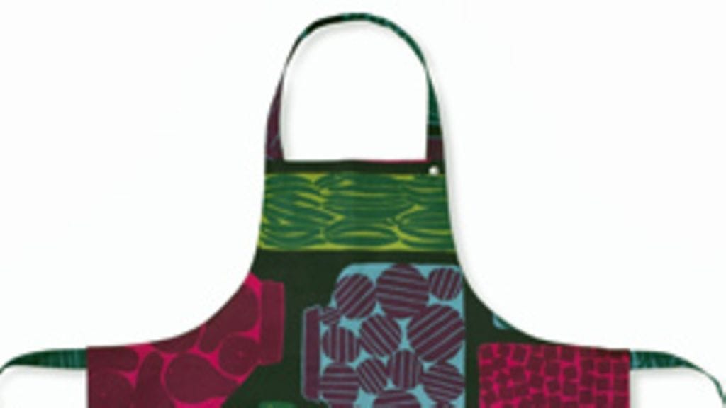 Puuvillaisesta printtikuosista on tehty myös valmiita tyynynpäällisiä, essuja ja muuta keittiötilpehööriä.