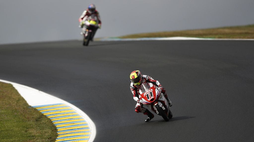 Masia kaatui neljänneltä sijalta ja joutui keskeyttämään. 21. lähtöruudusta lähtenyt Acosta oli noussut nopeasti jo viidenneksi, mutta nuori espanjalainen menetti pidon etupyöränsä alta ja kaatui kyljelleen.
