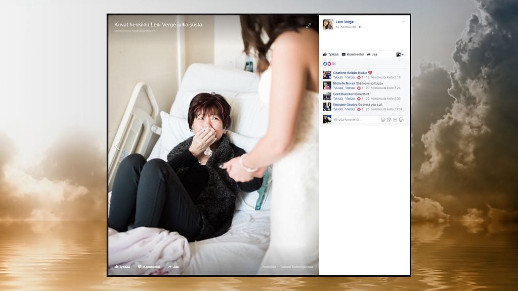 – Siitä asti, kun olin pieni lapsi, unelmoin, että menisin hääpukuostoksille äitini kanssa, löytämään täydellisen puvun yhteen elämäni erityisimmistä päivistä. Kun äitini terveys alkoi heikentyä hitaasti vuoden aikana, hääpuvun ostaminen oli mielessäni enemmän kuin koskaan. En voinut kuvitella koskaan etsiväni täydellistä pukua ilman äitiä rinnallani, Verge sanoo.