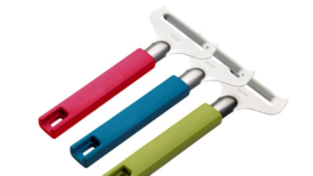 Väritä keittiötä purppuranvärisillä Colours Raspberry ja täyteläisen tummansinisillä Colours Blueberry -keittiötyövälineillä. Juusto- ja vihanneshöylä n. 5,50 euroa.