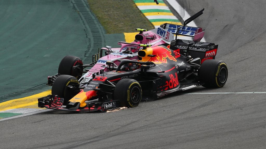 Ocon ja Verstappen ottivat yhteen hieman kisan puolivälin jälkeen. Loistavasti Interlagosin radalla ajanut Verstappen johti tuolloin kilpailua ja oli juuri ohittanut Oconin kierroksella.