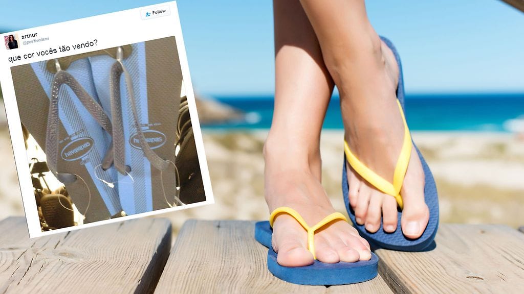 Nyt sama tilanne on jälleen edessä, kun somessa taistellaan siitä, minkä väriset alla olevat sandaalit ovat. Kuvan jakoi sosiaalisessa mediassa portugalilainen Twitter-käyttäjä.