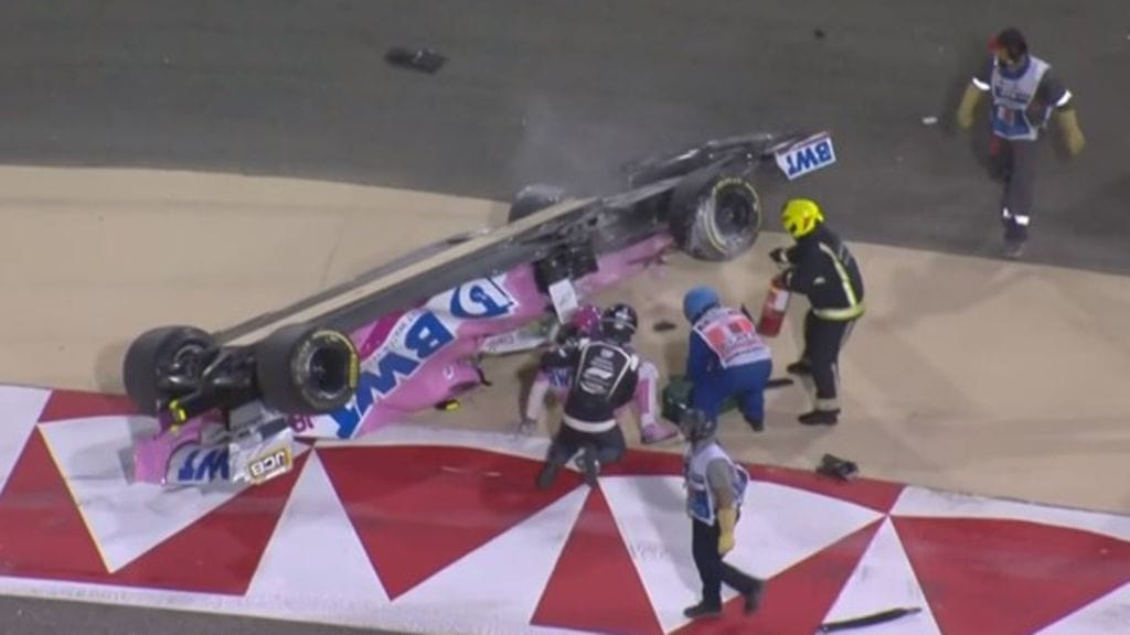 Bahrainin F1-kisa ehdittiin juuri saada uudelleen käyntiin Romain Grosjeanin rajun onnettomuuden jälkeen, kun Lance Strollin auto oli kääntynyt katolleen.