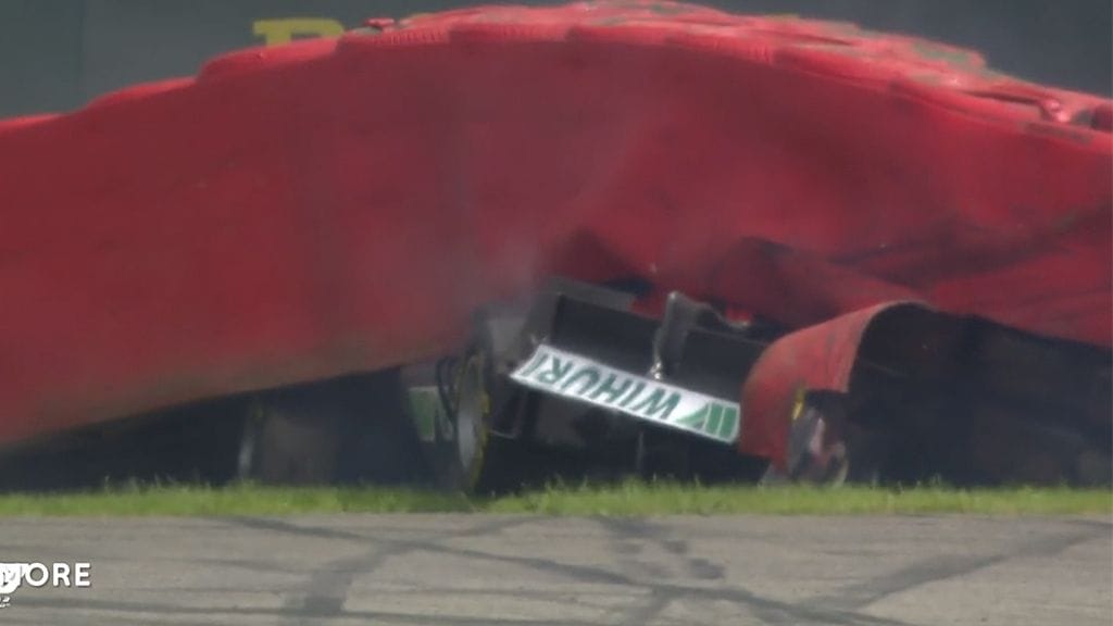 – Siinä ei ole Laaksosella mitään tehtävissä. Katso! Hän menee kaikkien rengaskasojen alle! C Moren selostaja Niki Juusela kommentoi.