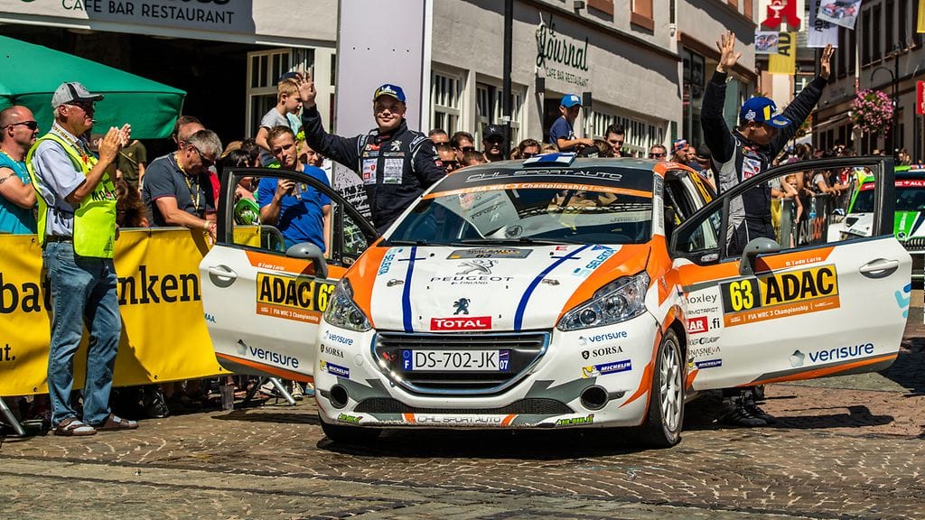 Helsinkiläinen 22-vuotias rallikuljettaja Taisko "Tade" Lario ja kartturi Tatu Hämäläinen pääsivät juhlimaan sunnuntaina Saksassa uransa avausvoittoa rallin MM-sarjassa.