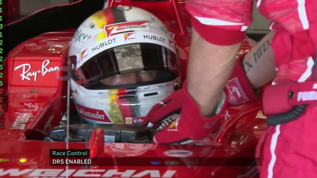 Vettelin autoa korjattiin jo lähtösuoralla, mutta ongelman uskottiin poistuneen. Saksalainen ei kuitenkaan pystynyt lähdössä puolustamaan kakkossijaansa, vaan joutui päästämään pian Red Bullin Max Verstappenin edelleen.