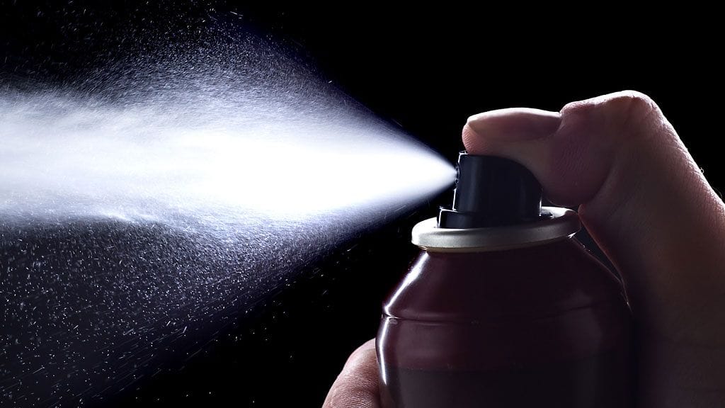 Hyvästä tähtäyksestä huolimatta tahmaista hiuslakkaa saattaa päätyä kuontalon lisäksi myös kylpyhuoneen seiniin.