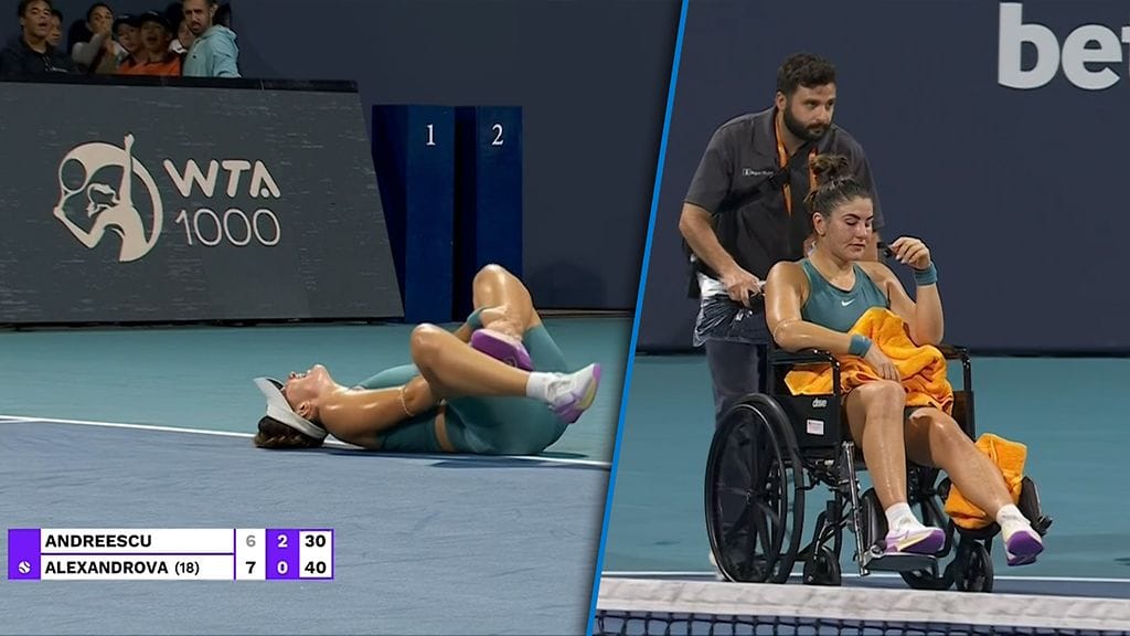 Andreescu, 22, joutui luovuttamaan neljännesvälieräottelunsa venäläistä Ekaterina Alexandrovaa vastaan toisessa erässä. Kanadalainen rojahti kentän pintaan pidellen vasenta nilkkaansa.