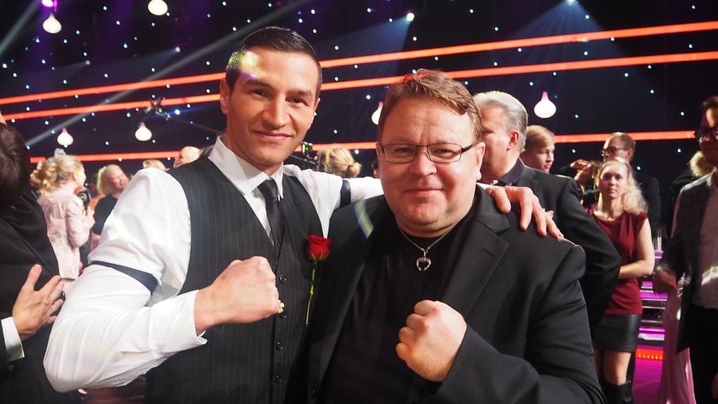 Nyrkkeilyvalmentaja Pekka Mäki saapui viime sunnuntaina Tanssii Tähtien Kanssa -ohjelman katsomoon kannustamaan valmennettavaansa huippu-urheilija Edis Tatlia.