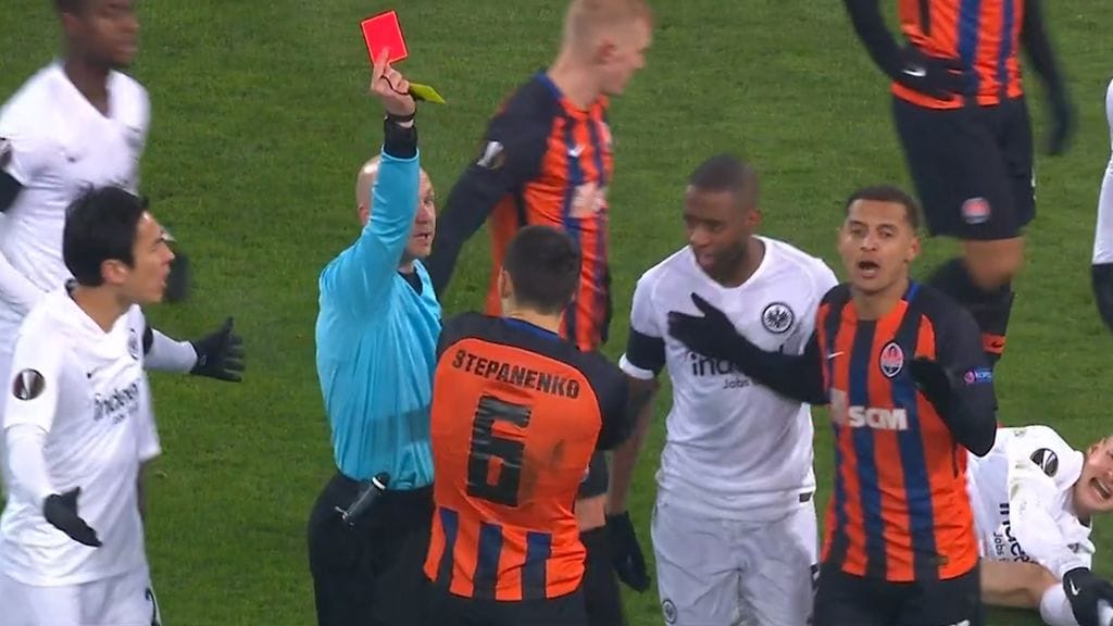 Stepanenko nimittäin taklasi itselleen toisen keltaisen kortin jo 11. minuutilla. Stepanenkon taklaus oli ruma, ja se näytti vääntävän Eintracht Frankfurtin Sebastian Roden nilkan ikävästi.