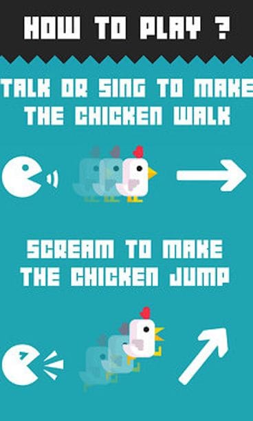 Chicken Scream on hyvin yksinkertainen päättymätön tasoloikkapeli, jossa ohjataan kanaa yli kuilujen ja esteiden sekä kerätään kolikoita. Pelin ulkoasu on hyvin retroa ja yksinkertaista, eikä pelissä sen suurempia erikoisuuksia ole. Paitsi tietysti ohjaustapa. Kana ei nimittäin kävele automaattisesti eikä hyppääminen tapahdu näyttöä näpäyttämällä, vaan kana tottelee ääntä.