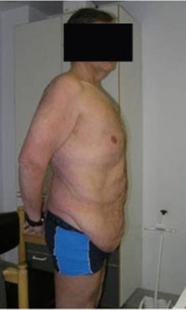 Leikkauksen jälkeen painoa putosi yli 100 kiloa. Kuvassa vuoden kuluttua leikkauksesta painoa on 97 kiloa. Muutoksen myötä myös miehen verenpainelääkityksestä voitiin luopua.