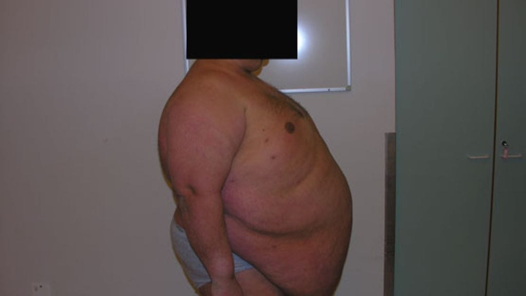 Kuvan miehellä oli painoa peräti 216 kiloa, ja painoindeksillä 68 hän pääsi lihavuusleikkaukseen.