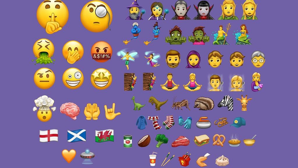 Mukaan on tulossa jälleen monenlaisia uusia emojeja, kuten kirahvi, vampyyri, merenneito, parsakaali, partaisia ihmisiä sekä useita uusia vaihtoehtoja keltaisesta perushymiöstä. Joukkoa uusia emojeja esitellään alla.