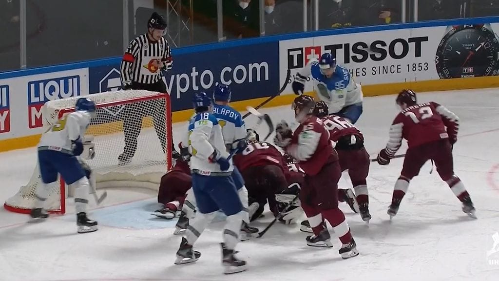 Ottelun päätöserässä nähtiin raivokas ja pitkään kestänyt taistelutilanne Latvian maalilla, kun maalivahti Matiss Kivlenieks ja kaikki Latvian ketjupelaajat heittäytyivät vuorollaan Kazakstanin maalintekoyritysten tielle.