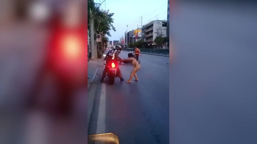 Thaimaan Bangkokissa tapahtui outo tilanne tiistaiaamuna, kun alaston nainen kävi poliisien kimppuun kadulla.