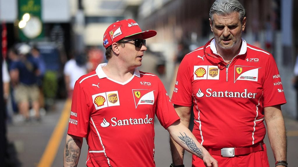 Ferrarin tallipomo Maurizio Arrivabene tulee loistavasti toimeen suomalaiskuskinsa Kimi Räikkösen kanssa.