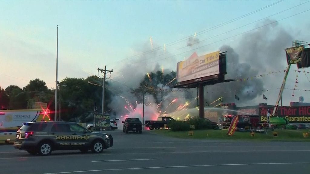 Paikallisessa Davey Jonesin ilotulitekaupassa raketit räjähtelivät jo aamukuudelta, kun tuli levisi kaupan pihalla olleeseen ilotulitevarastoon.