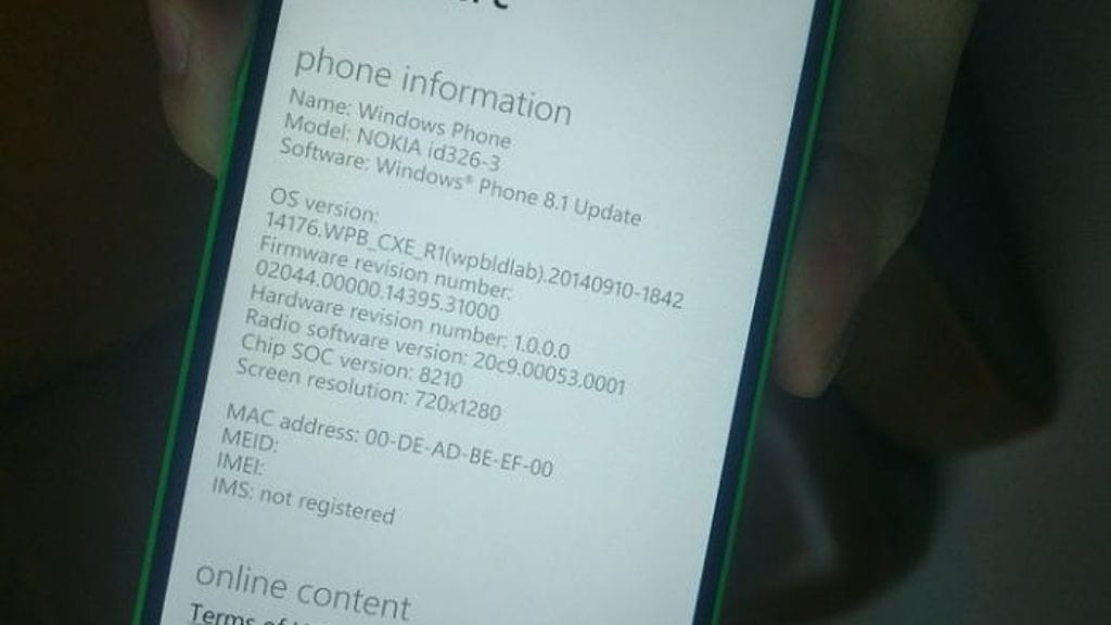 Valitettavasti prototyyppipuhelimen teknisiä tietoja ei ole ainakaan toistaiseksi tiedossa, mutta kuvia puhelimesta on saatu. WinCentralin mukaan Nokia id326-3 -puhelimen piti olla alun perin osa Android-pohjaista Nokia X -sarjaa, mutta näemmä ei koskaan päässyt julkistusvaiheeseen asti - edes Windowsilla varustettuna, jollaiseksi prototyyppi myöhemmin muunnettiin.