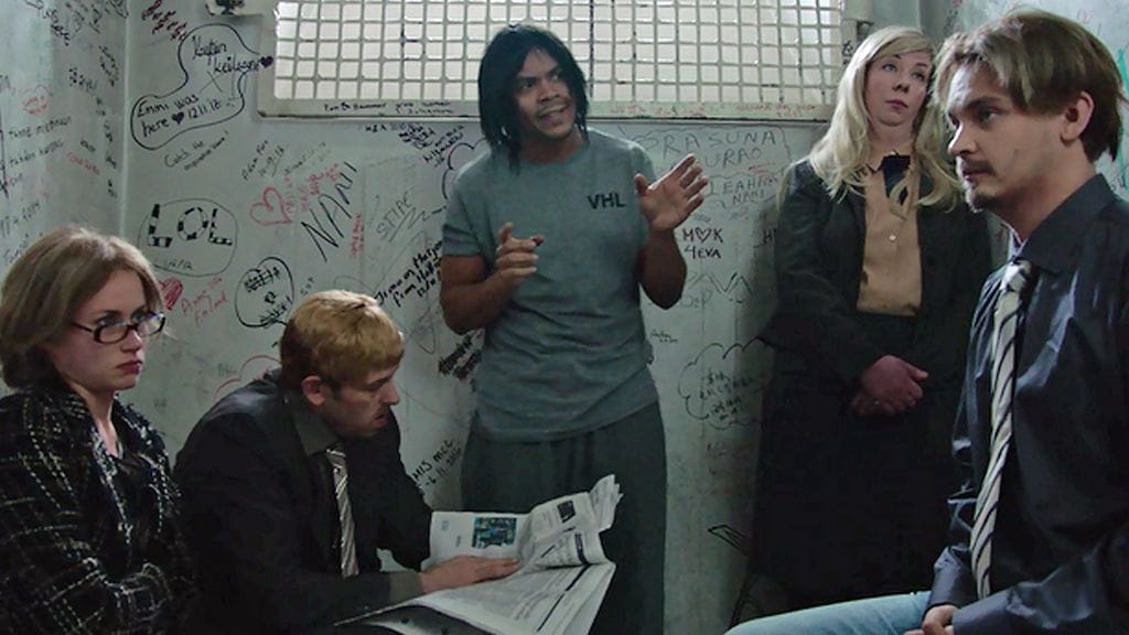 Vankilamaailmaan sijoittuvassa videoinsertissä ohjelman tähtinäyttelijät pistävät parastaan.