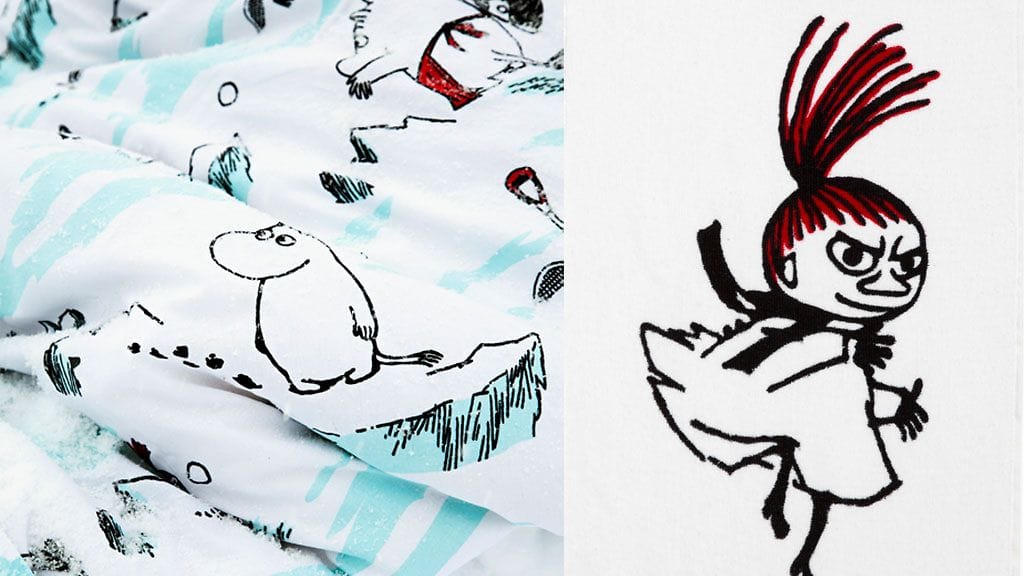 Tove Janssonin alkuperäiskuvitukset pääsevät Muumi-tuotteiden syksyn uutuuksiin. Pikku Myy ja Muumimamma löytyvät Finlaysonin tämän syksyn keittiötekstiileissä, petivaatteissa puolestaan näkyvät riehakkaat lumileikit.