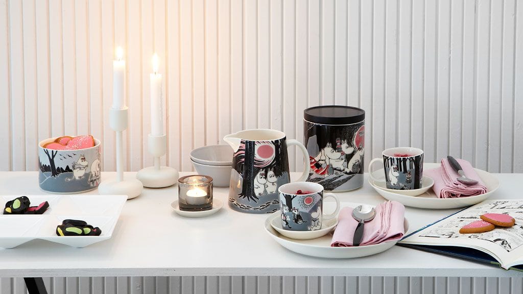 Muumien uutuustuotteissa nähdään tänä syksynä erityisen paljon Tove Janssonin alkuperäiskuvitusten inspiroimia kuoseja. Myös värimaailmat kunnioittavat rakastetun taiteilijan työtä.