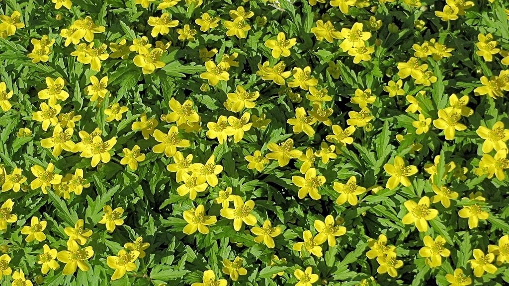 Keltavuokot kukkivat komeasti Hämeessä. Kuva: Hilkka Tikka, Lahti.