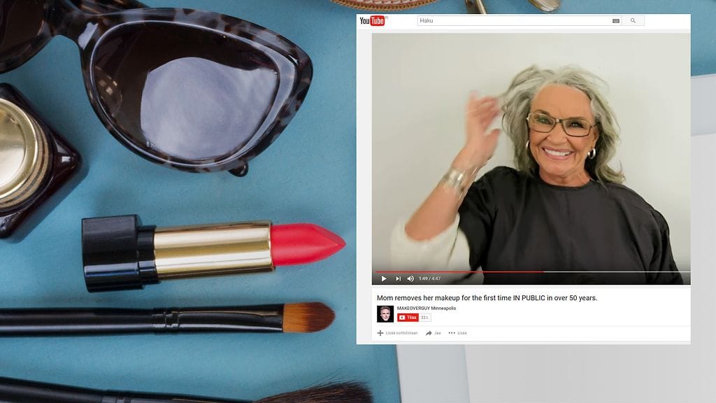 Yli 70-vuotias äiti suostui poistamaan meikkinsä ja peruukkinsa esitelläkseen kauneusrutiinejaan